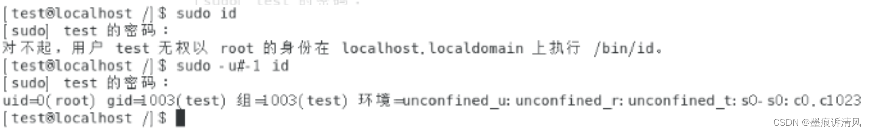 Enter the command ;sudo -u#1 id( This is the embodiment of this loophole , In principle, we limit test Out-of-service root The order of , But through this loophole Successfully obtained root jurisdiction )