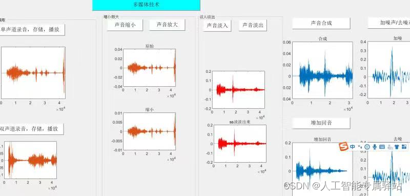 本程序实现了声音的识别,并设计了GUI 界面,实现了声音读取、缩小放大、嵌入嵌出、声音合成、增强回音和加强声、去噪声的功能。声音读取包括单声道录音,存储,播放和双声道录音,存储,播放。嵌入嵌出实现 了声音淡入和声音淡出功能。