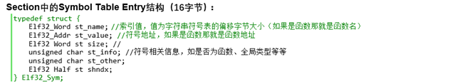 Section中的Symbol Table Entry结构(16字节):