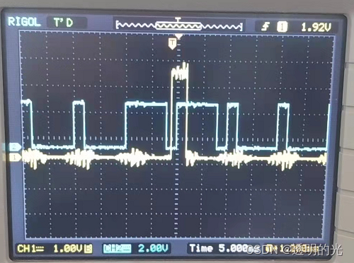 左边:B码存在时,示波器处于TD状态,能一直锁定到1PPS信号的波形;