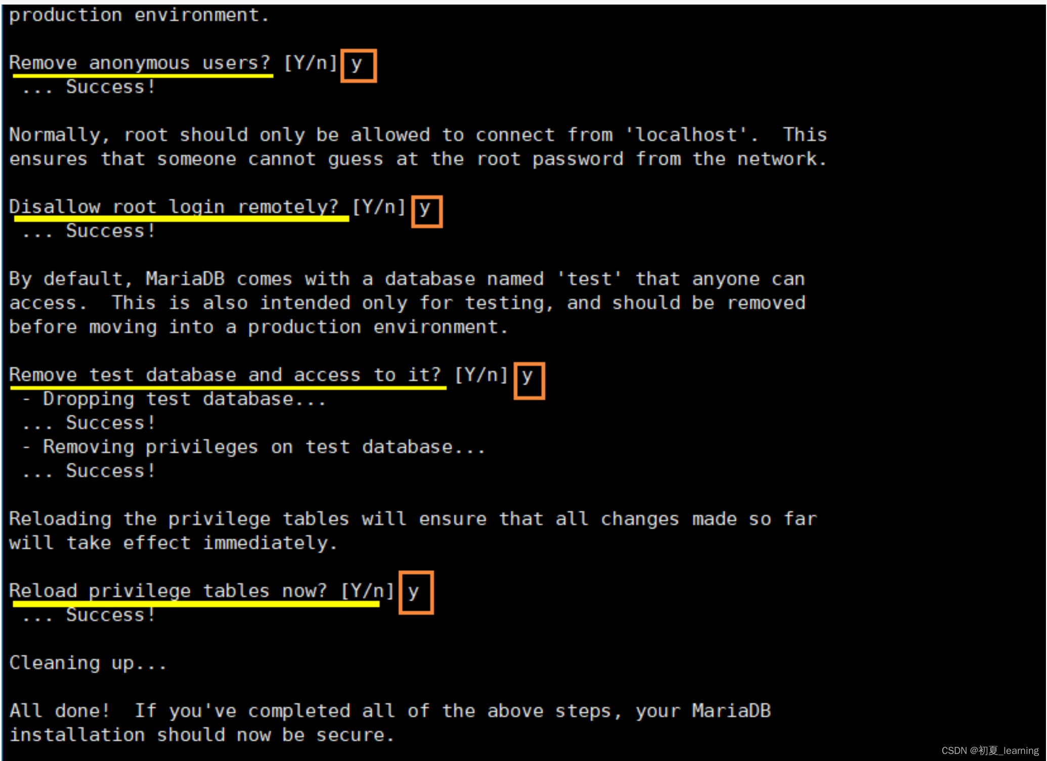 ④询问:是否删除匿名(anonymous)用户?y 这个根据实际情况而定。由于我们这里是实验,直接y到下一步。