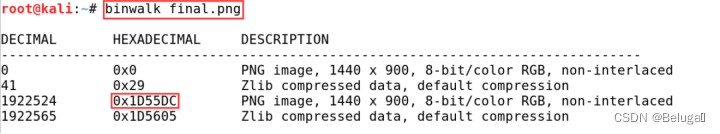Step six , First , Using tools binwalk To make sure final.png The data offset of the picture