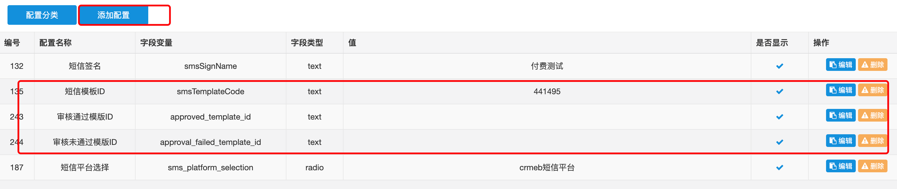 第二步:在知识付费总后台->系统维护->开发配置->配置分类->短信配置下加新的短信模版id储存配置
