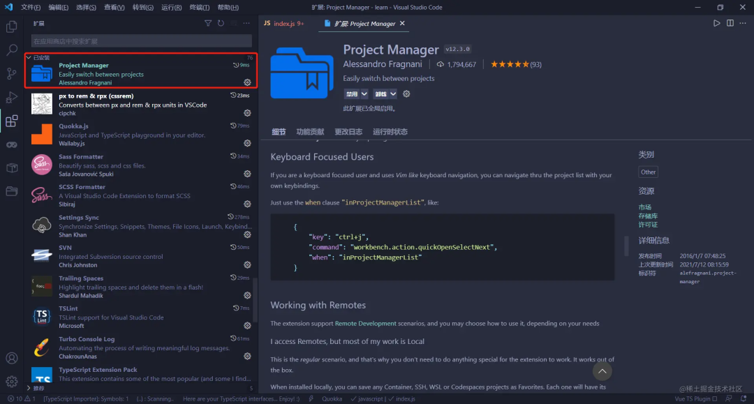 Project manager , It is applicable to the boss who often switches projects , Although I don't usually contact many projects , But I also have a lot of projects to play with . With this plug-in , You don't have to open the project in a new window .