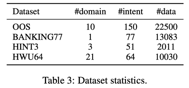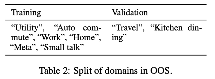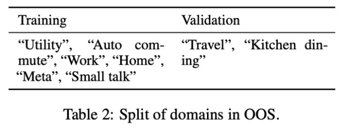 Used in the paper OOS Datasets as training and validation datasets , It contains 10 There are... Areas in total 150 Intention categories , The author removed the “Banking” and “Credit Cards” Data in two areas , Because the data and test sets of these two fields BANKING77 Semantically similar , The rest 8 In fields ,6 Used as a training set ,2 Used as validation set , As shown in the table 2 Shown .