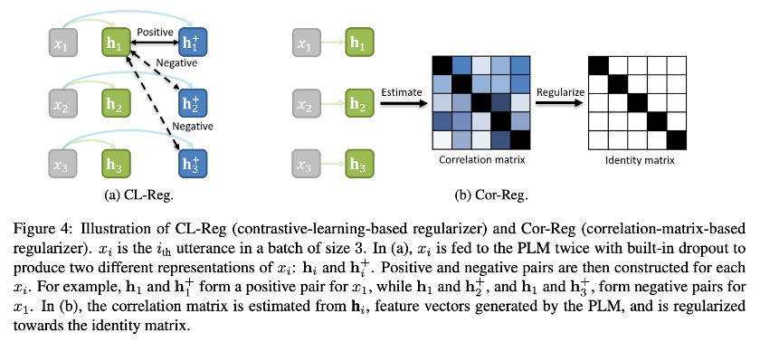 Whereas isotropic techniques may reduce fine-tuned PLM Performance of , So the author combines the isotropic technique with the training process , Two regularization methods are proposed , Pictured 4 Shown , Make the model more isotropic in the training process .