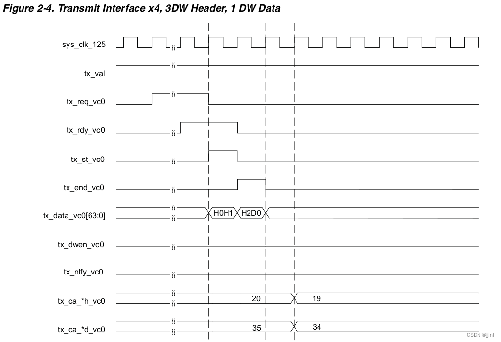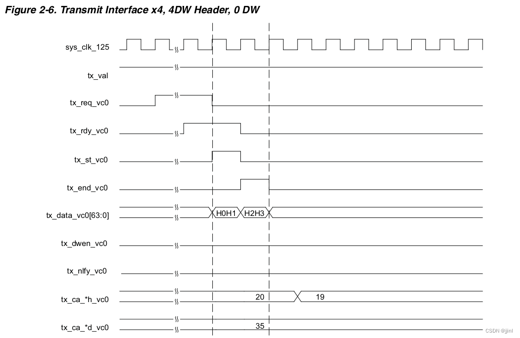 tx_ca_*h_vc0 和 tx_ca_*d_vc0在每次发送请求之前必须检查,发送完成后对应的值会减一,这两个类型的标志是指示上端口是否有资源转发你的发送数据