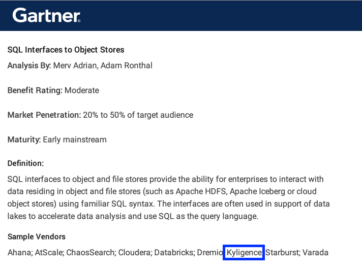 Kyligence 入选 Gartner 2022 数据管理技术成熟度曲线报告