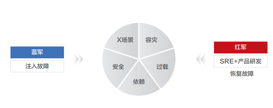在混沌工程的运作方式上,除常规的混沌测试外,还采用定期的红蓝攻防和生产突袭两种方式进行,红蓝攻防一般是选择一个完整的时间窗,将人员分为2组,一组为蓝军,负责分析故障场景,设计故障注入方案,并且执行故障注入,目的是制造出真实的故障;另一组为红军,在指定的时间内发现和恢复故障,红蓝对抗可以邀请管理层参加,增强团队成员和周边团队对混沌工程的重视。生产突袭是指一些故障场景在测试非常成熟的情况下,可以采用无任何通知的情况下,由蓝军注入故障,以突袭的形式进行,生产突袭相对红蓝对抗可以更全面检验业务的告警发现能力,人员响应人力,业务恢复能力,事件组织运作能力。