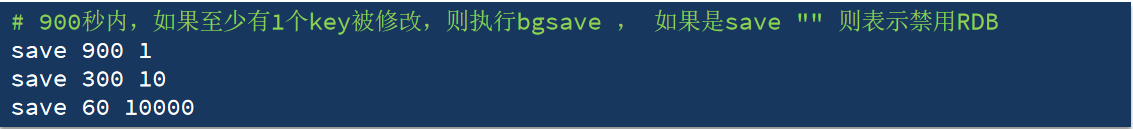Redis内部有触发RDB的机制,可以在redis.conf文件中找到,格式如下: