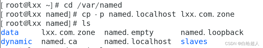 cd /var/named then cp -p named.localhost lxx.com.zone