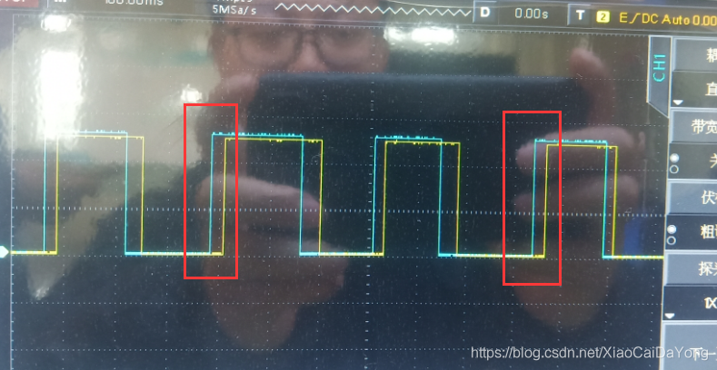And then , Plug it in , Use an oscilloscope to test the waveform generated by these two pins . The effect is as follows :