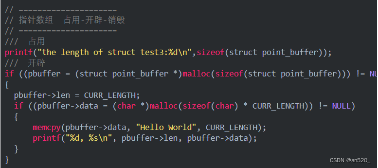 4、 Variable length data buffer ( Open up space , Release , visit )