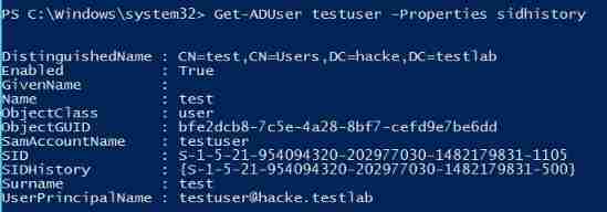 First create a malicious user testuser, Use powershell Check the user's SID History