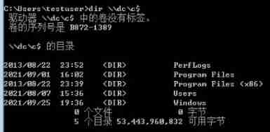 Test it , Successful execution dir \\dc\c$ , And you can create a domain management account , Copy files, etc :