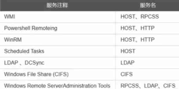 Service types can be selected from the following , Because no TGT Go and apply for ticket, So we can only forge some services