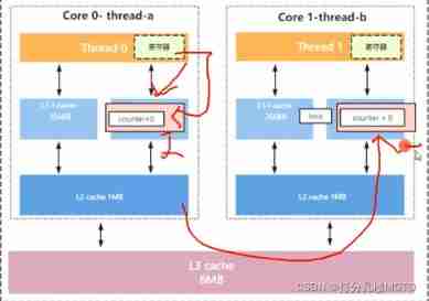 CPU0 We have finished adding 1 operation counter It has become 1, Notice to CPU1 Immediately invalidate the variable , But this time CPU1 You have run to the register to add 1 Operation