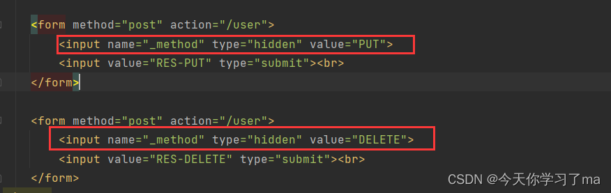 The form submission will bring _method=PUT, Ask to come and be HiddenHttpMethodFilter Intercept , Check whether the request is normal , And is POST