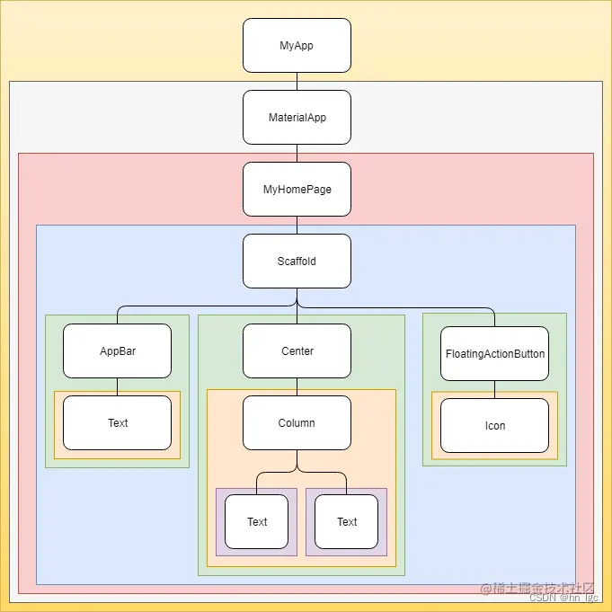 If we now observe this basic example,我们将获得以下 Widget 树结构(Restrictions exist in the code Widget 列表)