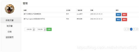 后端功能模块:博客分类管理、文章添加、修改、删除、查看等操作