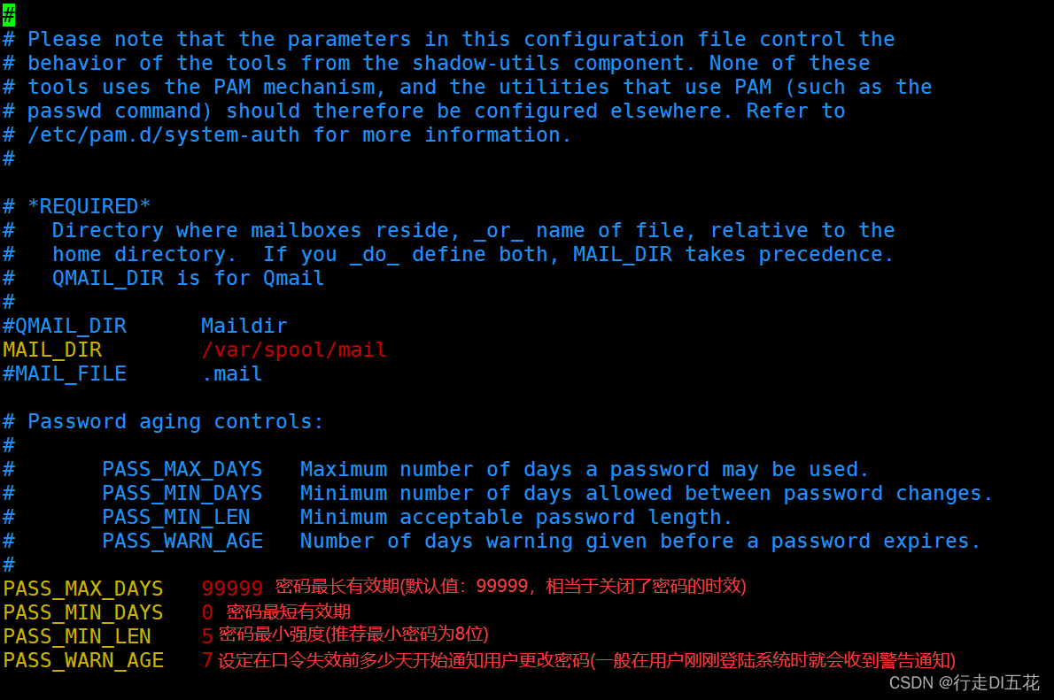“/etc/login.defs” Files are some plans when creating a user , For example, when creating a user , Do you need a home directory ,UID and GID The scope of and the duration of users , This document is available through root To define the
