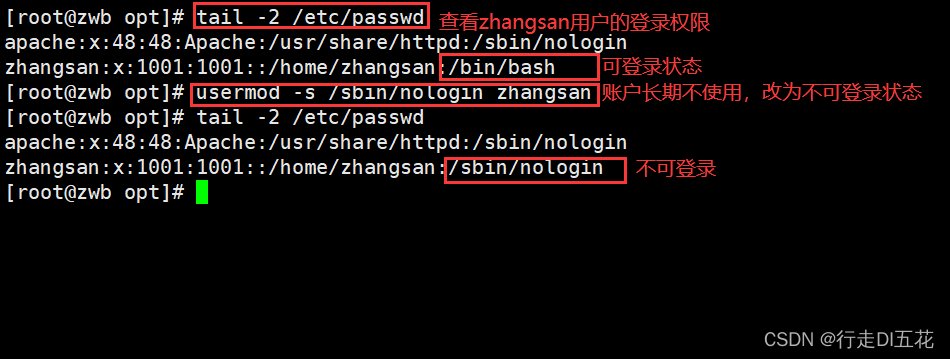 ① Will not be the login user's Shell Set to /sbin/nologin