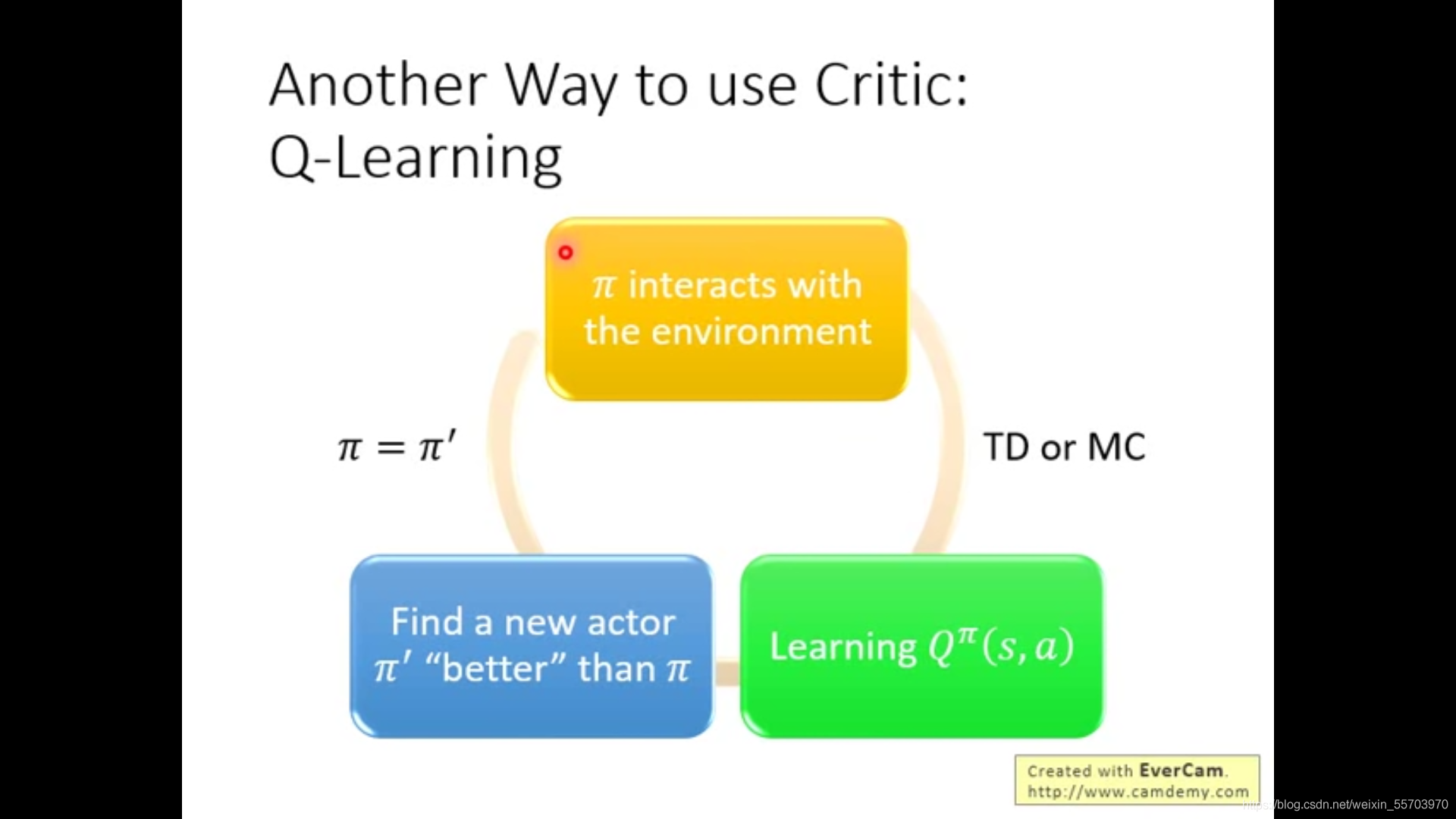 First of all, review critic: Responsible for one actor Scoring , When actor At some point state When ,critic You can calculate the possible expectations in the future . Be careful :critic Give a score and actor(policy\pi) The binding of , The same state Different actor Words critic Will give different reward expect .