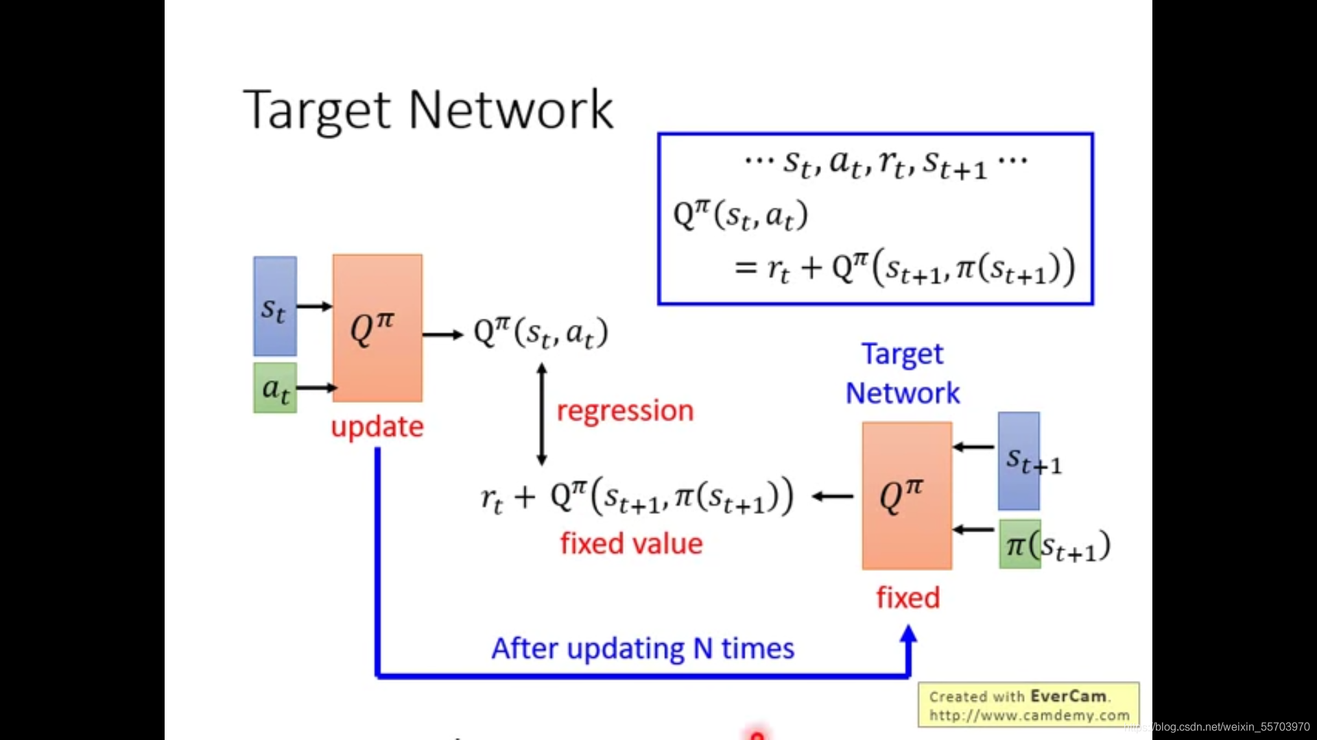 actor-critic Two networks in the network . One is only responsible for walking and usually doesn't move (target network); Another crazy move (……) Be responsible for producing as good as possible action, Crazy exploration to find the best next step back to target,target Walk to the next state Explore crazily again ....( It's bad luck )