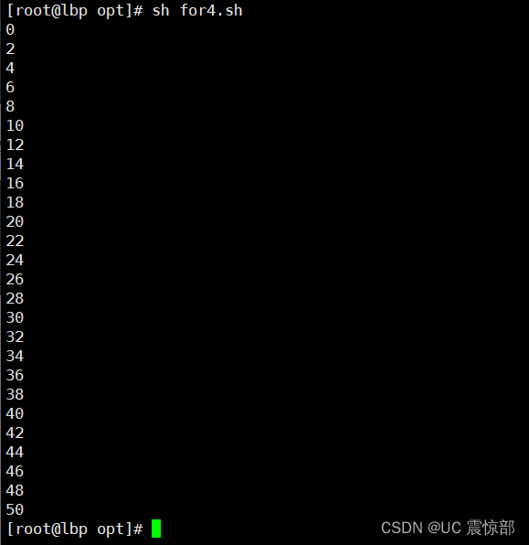 for i in {0..50..2} //..2代表步长为2,每隔2个输出