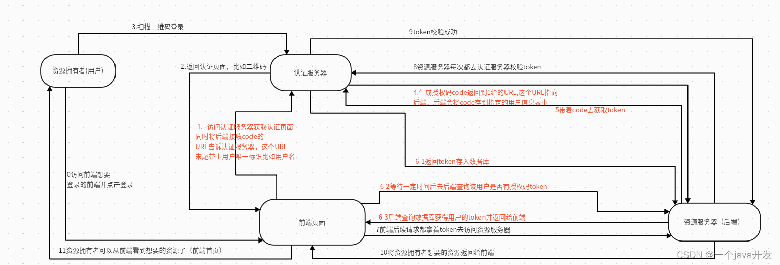 密码模式:扫描二维码那个界面不是认证服务器提供的,是由前端页面自己提供的一个输入账号密码的界面,用户输入账号密码之后,前端去拿着账号密码去访问认证服务器,认证服务器验证账号密码后返回token给前端,前端访问后端带上token,后端去认证服务器校验token 。这种模式有可能账号密码是盗来的。公司内部的网站可以使用。微信QQ都不支持这种模式。