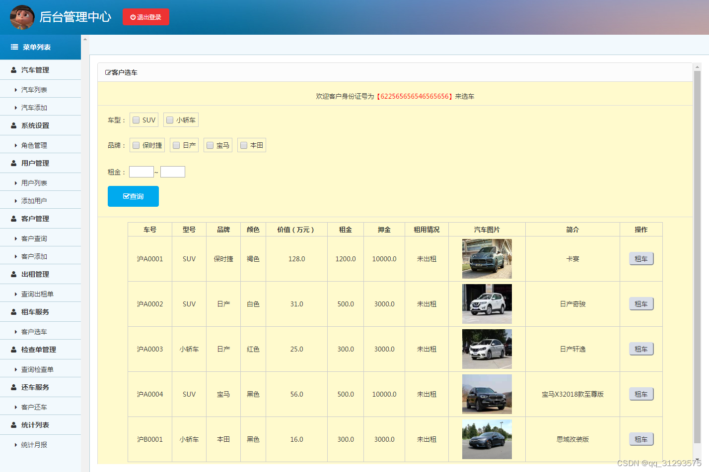 jsp+ssm+mysql Realized car rental vehicle management system car rental