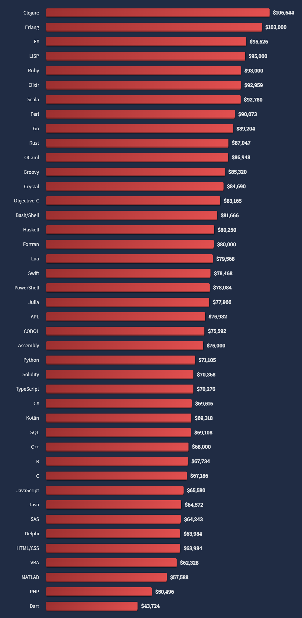 此外,与具有相同经验的其他语言相比,PHP 开发人员的薪水仍然过低。