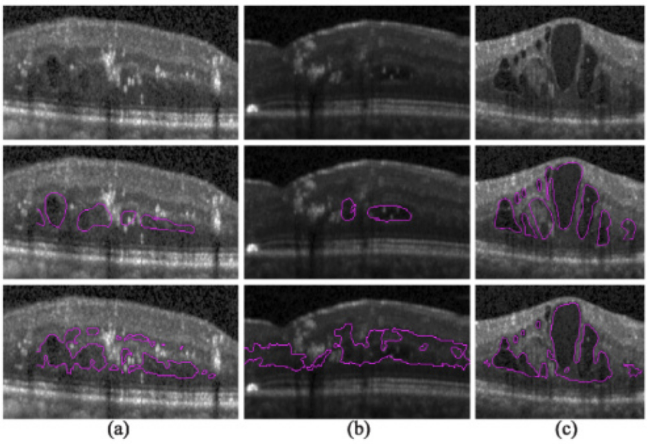 Use the Duke enterprise data unified content browser search engine to trace and identify patients in the medical retina practice of Duke Eye Center , And use the DME (ICD-9 362.07) Billing code . then , An ophthalmologist uses standard Spectralis(Heidelberg Engineering,Heidelberg,Germany)61 The line volume scanning protocol defines 6 Patients with clinical imaging , These patients have severe DME Pathology and different image quality .