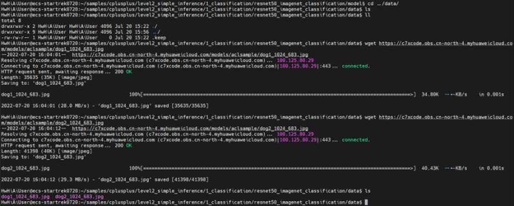 cd ../data/ wget https://c7xcode.obs.cn-north-4.myhuaweicloud.com/models/aclsample/dog1_1024_683.jpg wget https://c7xcode.obs.cn-north-4.myhuaweicloud.com/models/aclsample/dog2_1024_683.jpg