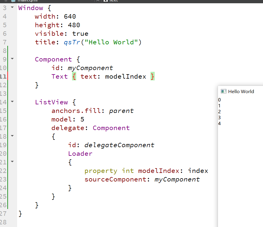 Loader 可以加载 QML 文件(使用 source 属性)或 Component 对象(使用 sourceComponent 属性)。 它可用于延迟组件的创建。