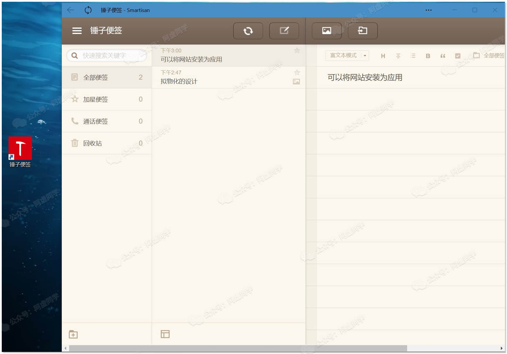 你就变相获得了一个桌面版的锤子便签,将快捷方式固定到任务栏来使用的话还是挺方便的