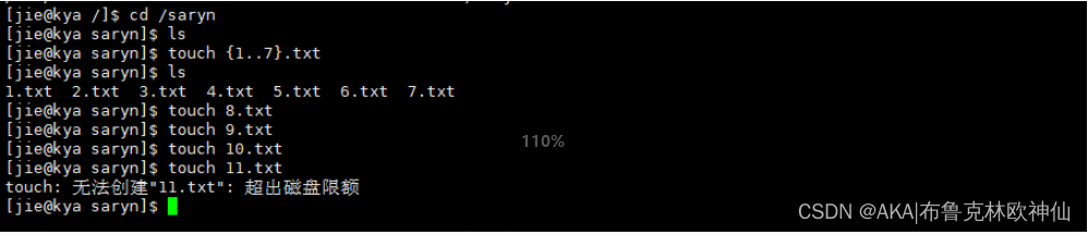 进入到这个目录下,因为设置了创建文件的软链接为8,硬链接为10,所以第11个创建不了