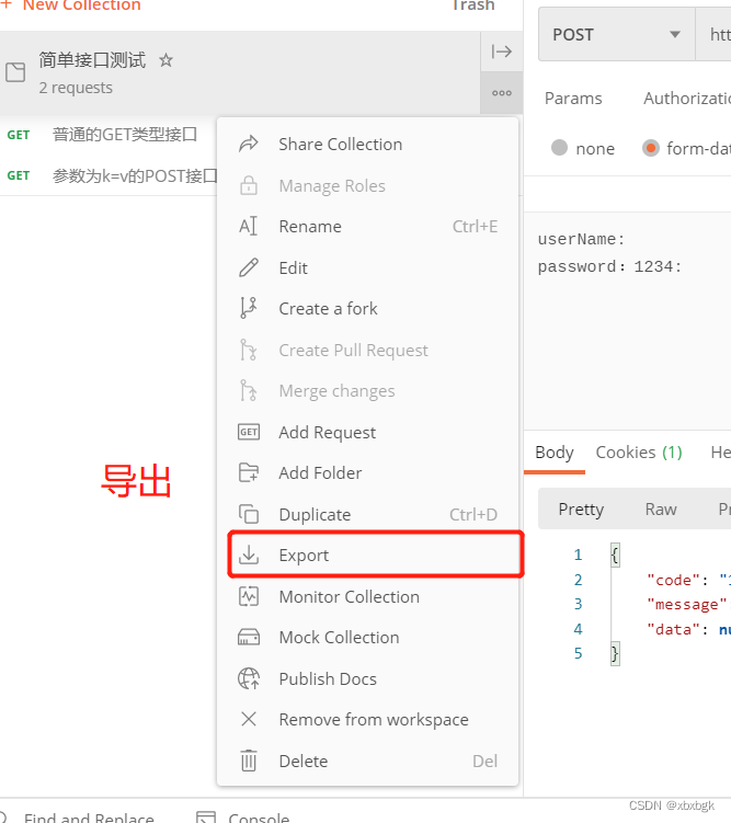 First create a collection, create the interface that needs to be run in the collection, and click run