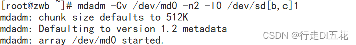 ① Grammatical format analysis :mdadm -Cv /dev/md0 -n2 -l0 /dev/sd[b,c]1