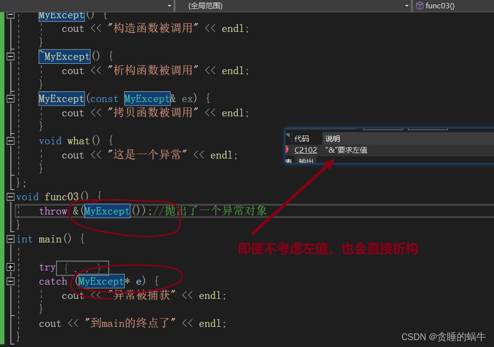 ③ 因为栈展开的过程中,要复制异常类型,那么要根据你在类中添加的成员考虑是否提供 自己的复制构造函数