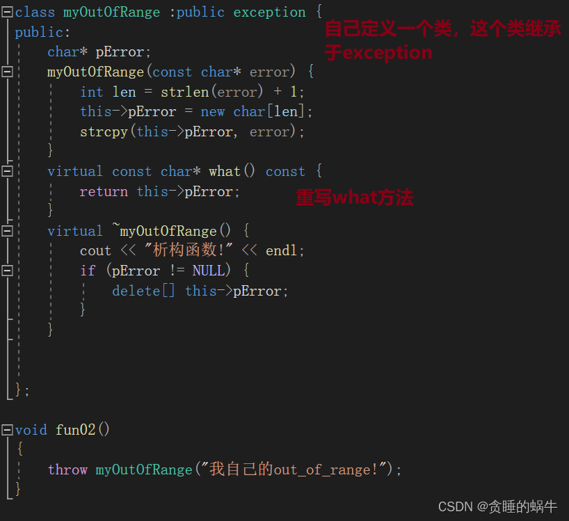② 当继承标准异常类时,应该重载父类的 what 函数和虚析构函数。