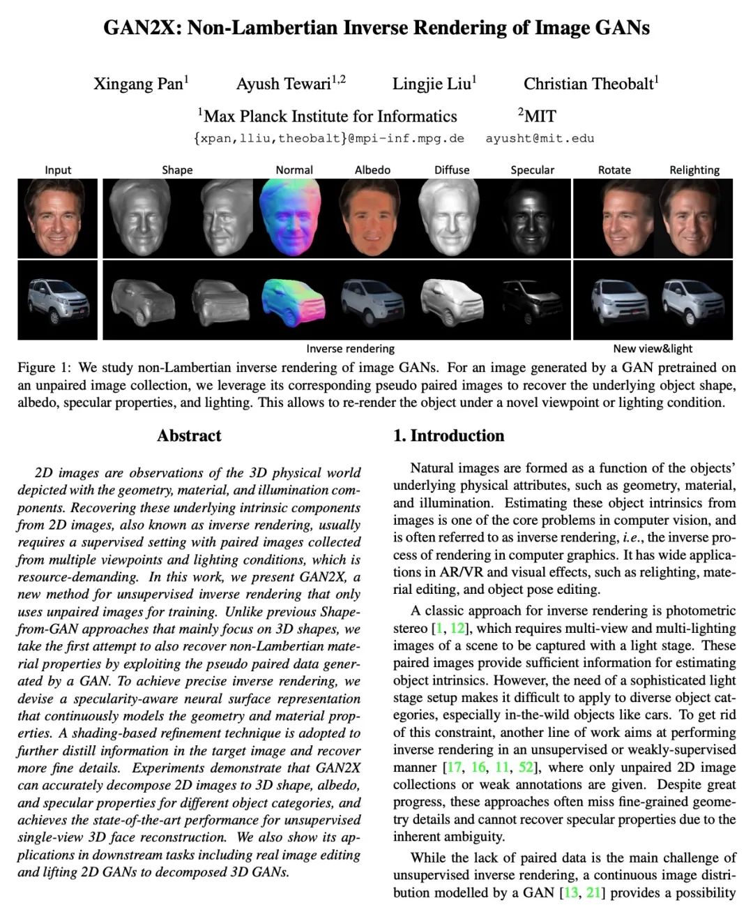 2、[CV] GAN2X: Non-Lambertian Inverse Rendering of Image GANs