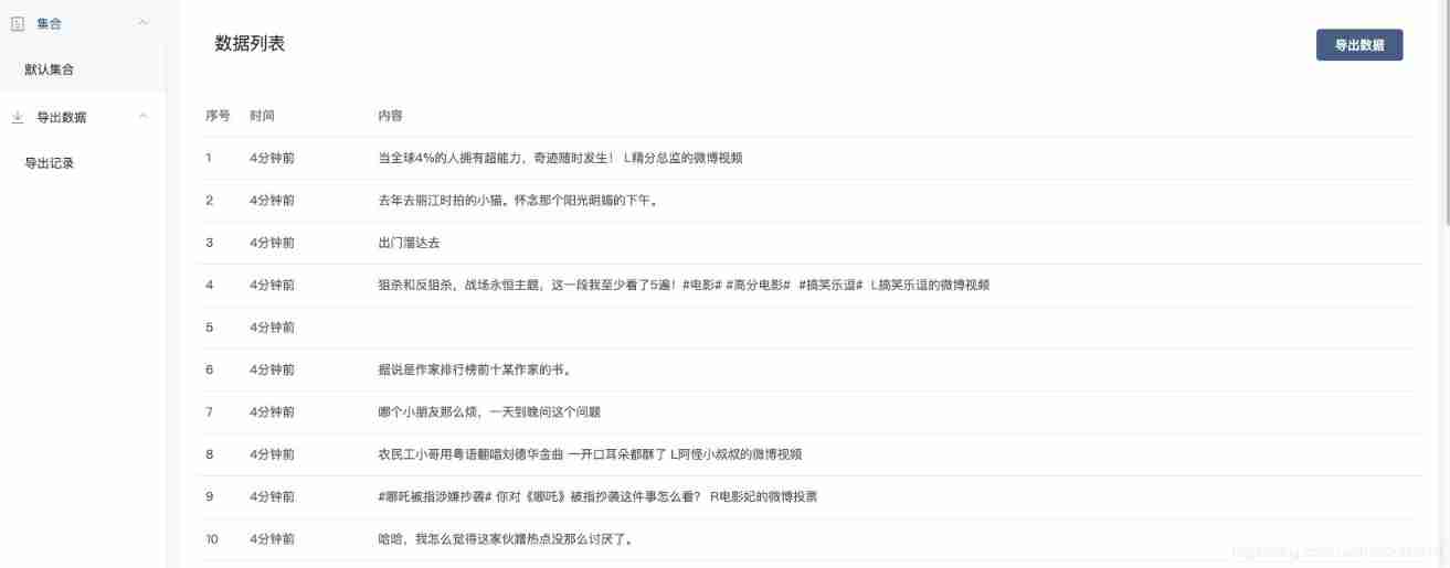 Total cost 5 Minutes of time , Grab it 10 A page , 400 microblogs in total . Because my microblog is not posted very often .