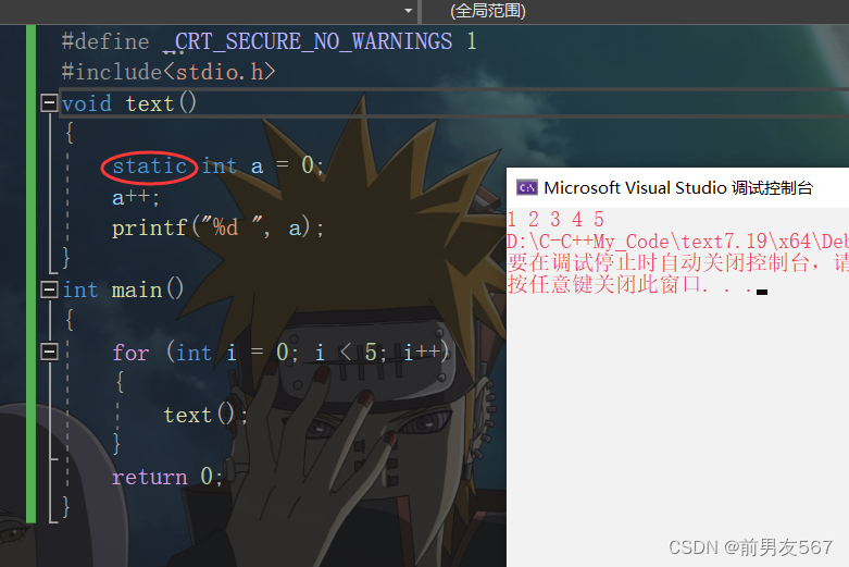 写一段代码来看看static是怎样延长变量的生命周期的: