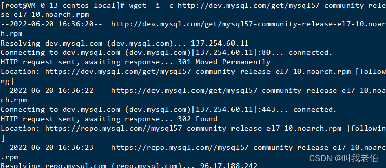 wget -i -c http://dev.mysql.com/get/mysql57-community-release-el7-10.noarch.rpm