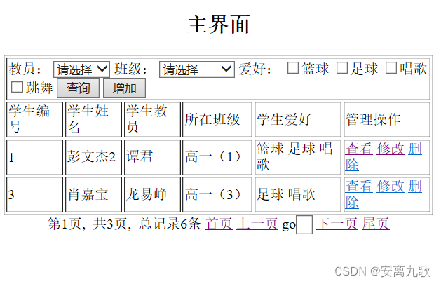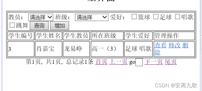 You can query by multiple conditions : According to the class 、 Teachers' 、 Like to query