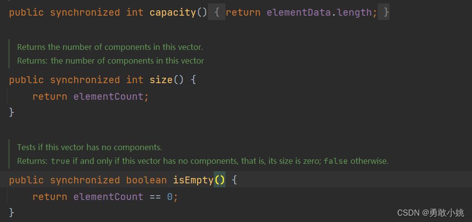 Vector Other methods in , Such as : Determine whether it is null 、 Get the length and other methods , It's all locked . therefore , It can be said that Vector It's thread safe .