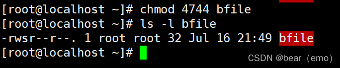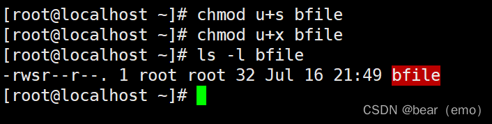 7. Set up suid, Set for file suid( Two ways u+s and nnnn) The way