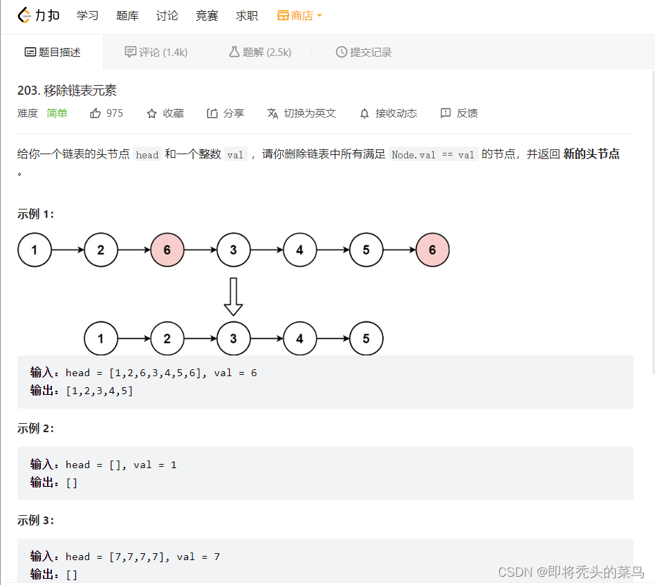 首先我们要明确目标,看到是删除链表中 所有 满足的节点,并且返回新的头节点。